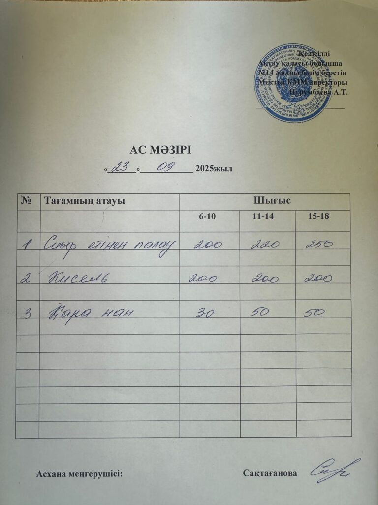 Ас мәзірі 23.09.2025 Бағасы 600 теңге