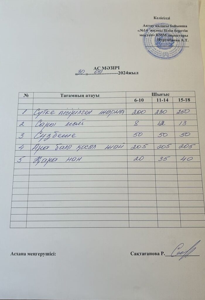 Ас мәзірі 30.09.24
