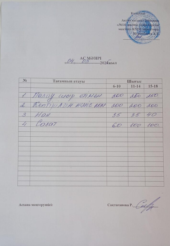Ас мәзірі 4.03.25 Бағасы 600 теңге