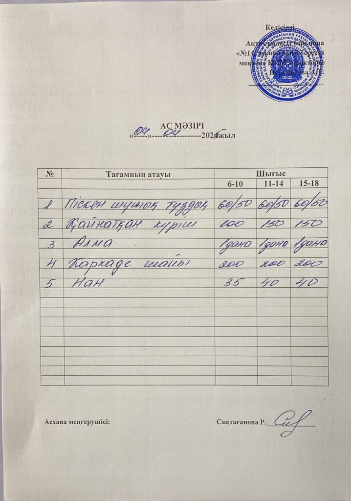 Ас мәзірі 4/04 Бағасы әр балаға 600 теңгеApril 4, 2025April 9, 2025 Leave a Reply Cancel replyYou must be logged in to post a comment.