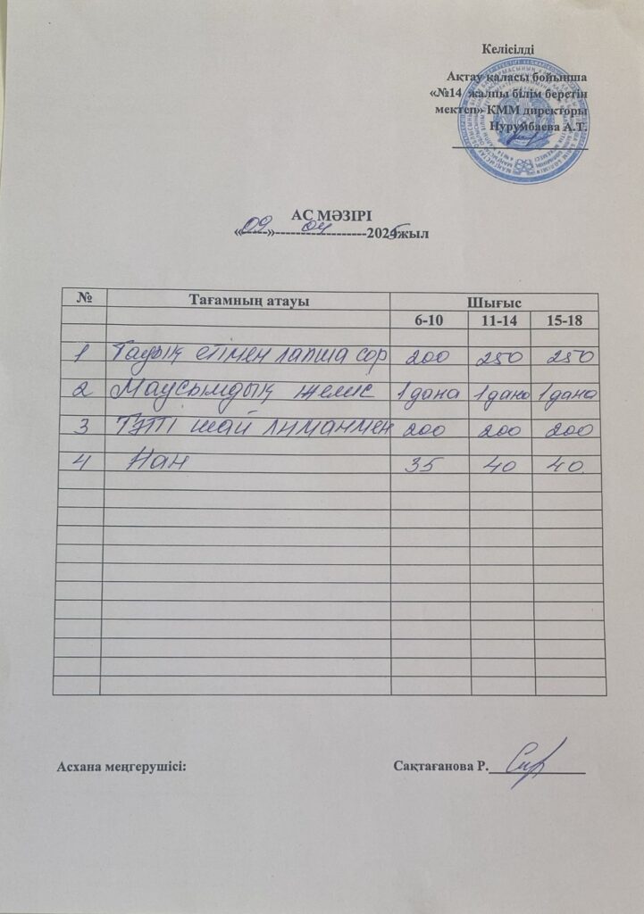 Ас мәзірі 9/04 Бағасы әр балаға 600 теңгеApril 9, 2025April 9, 2025 Leave a Reply Cancel replyYou must be logged in to post a comment.