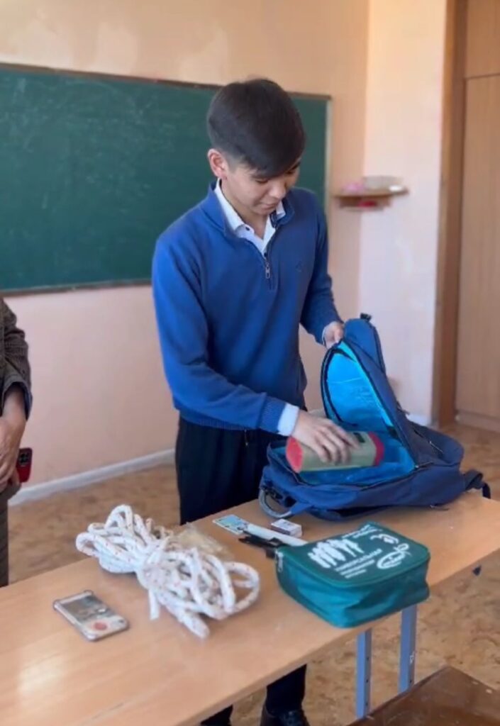 азаматтық қорғау майоры Қайрат Есназаров мектеп қызметкерлеріне және оқушыларға тиісті әрекеттерді орындатып, түсіндірме жұмысын жүргізді.